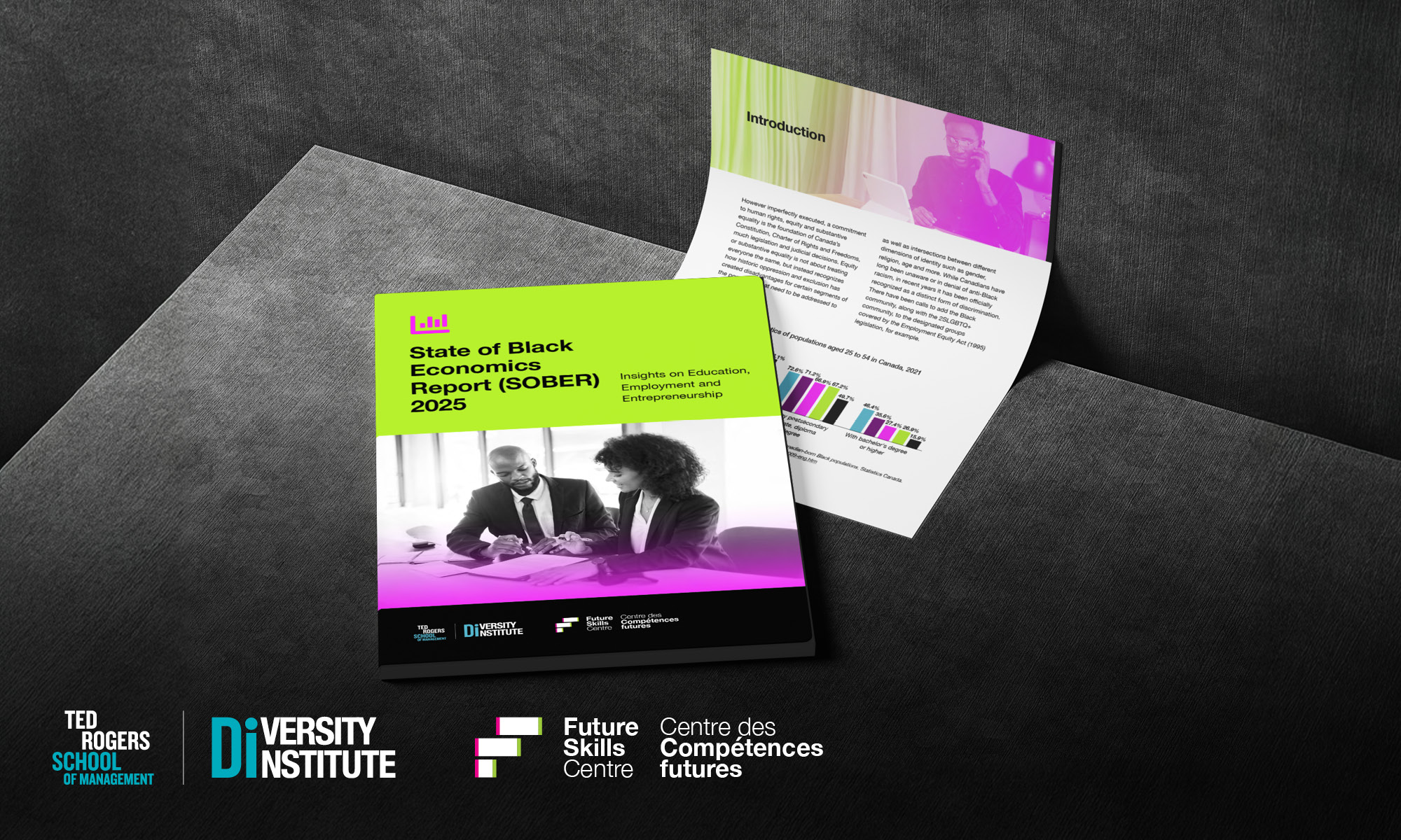 A selection of recent report designs for the Diversity Institute at Toronto Metropolitan University, created in partnership with the Future Skills Centre. Each report follows a cohesive design system that blends both brands’ visual identities for a consistent and professional look.