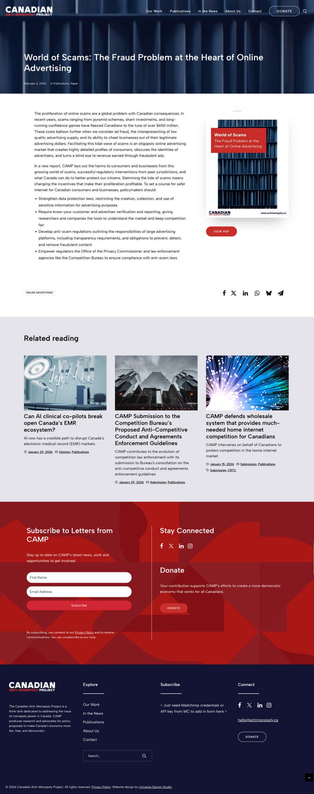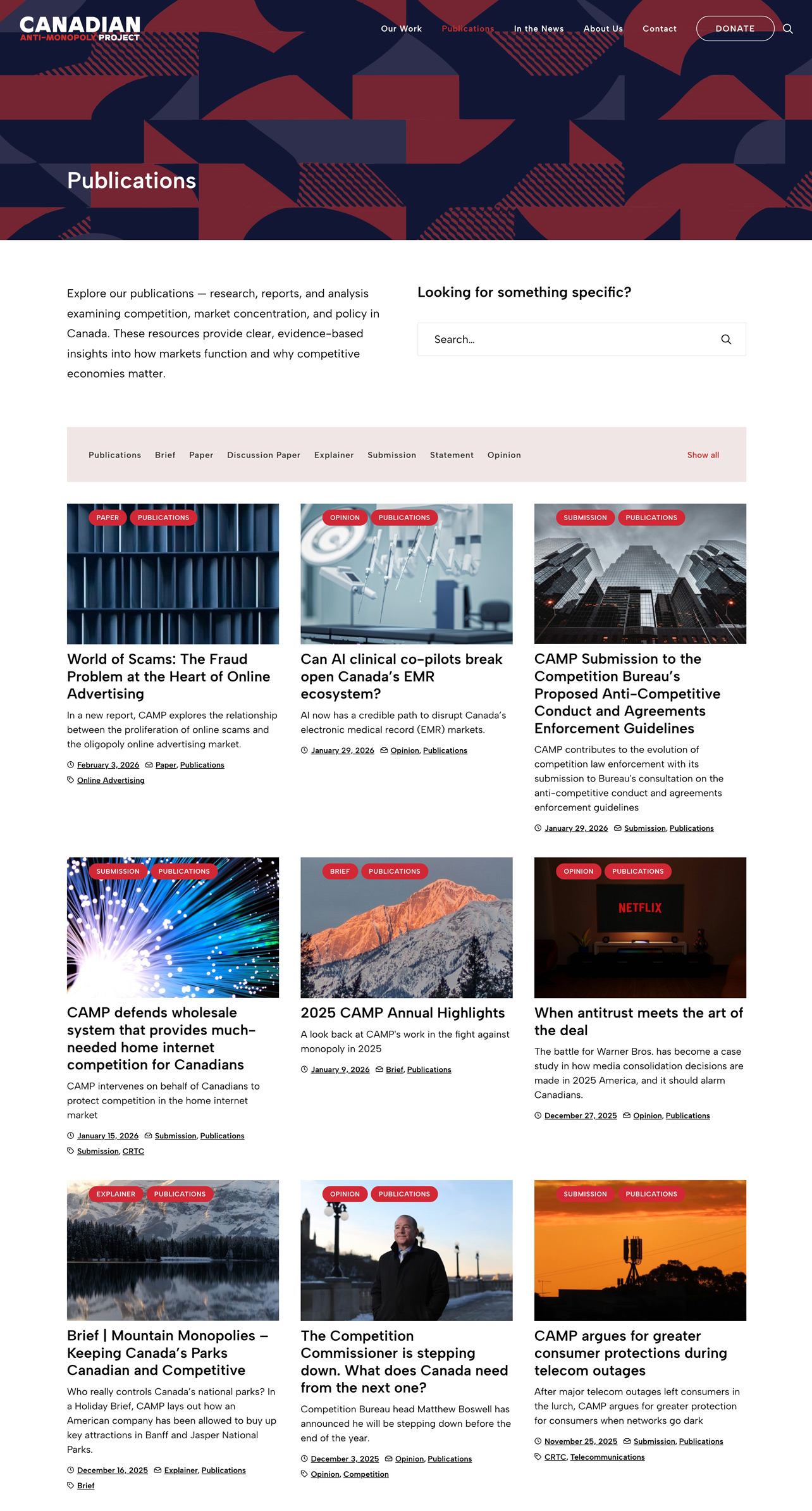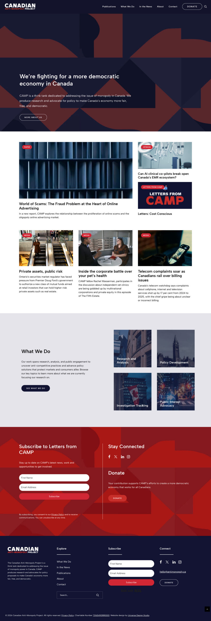 Website design for the Canadian Anti-Monopoly Project, a non-profit think tank advancing research and advocacy to address monopoly power in Canada.